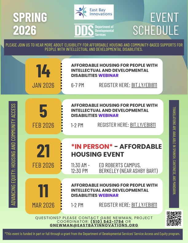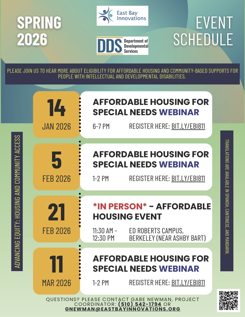 The Department of Developmental Services (DDS) has partnered with East Bay Innovations (EBI) to develop the Advancing Equity: Housing and Community Access program.
